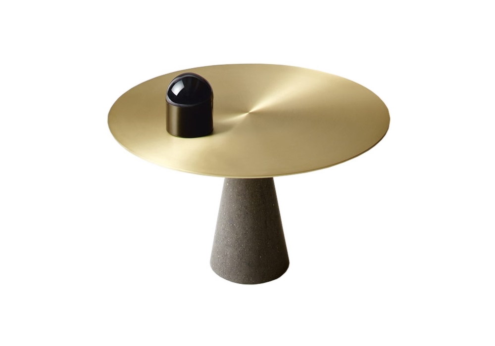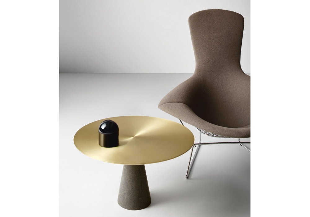Leaf von Luca Martorano für Neutra entworfen, ist ein runder Couchtisch mit Basis aus Stein in verschiedenen Ausführungen und Tischplatte aus Stein, Glas, Metall oder Holz.