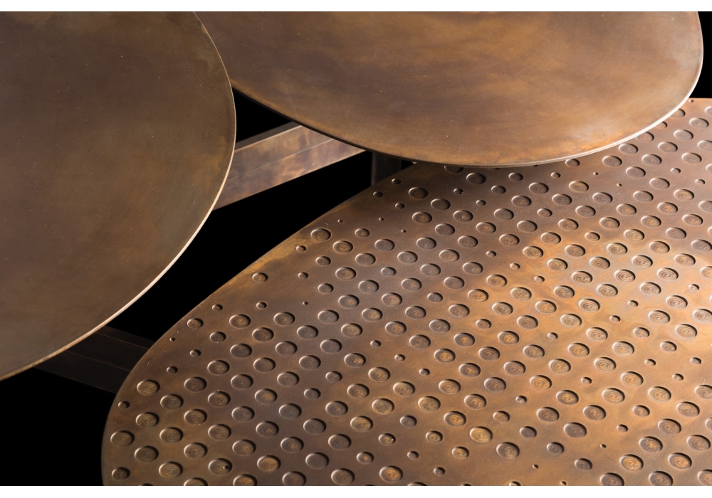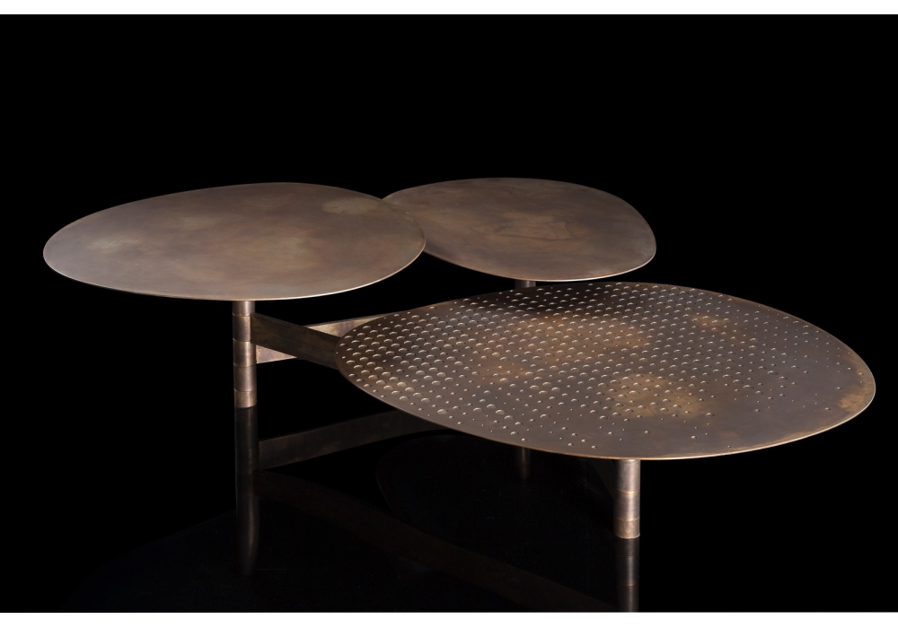 Galaxy Maxi von Massimo Castagna für Henge entworfen ist ein Couchtisch mit drei abgerundeten Platten unterschiedlicher Größe. Er besteht vollständig aus lackiertem Stahl und ist in verschiedenen Ausführungen erhältlich. Schwenkbare Tischplatten.