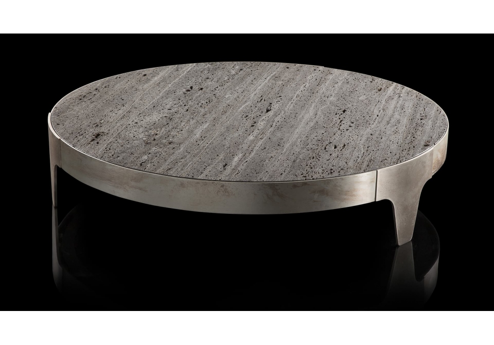 SR-Table von Massimo Castagna für Henge entworfen, ist ein Runder Couchtisch mit Steinplatte und Gestell aus metall. Verfügbar in mehreren Ausführungen und Abmessungen.