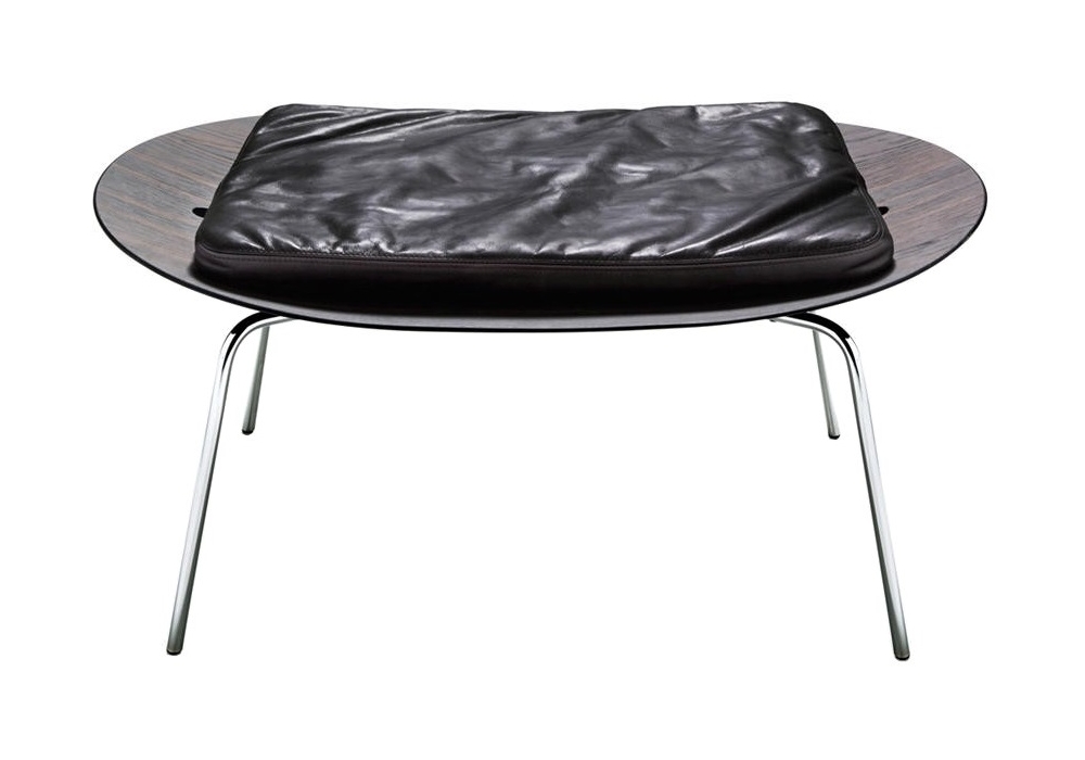 Betulla von Vico Magistretti für DePadova entworfen, ist ein Beistelltisch mit Untergestell aus poliertem Stahl und Platte aus geräucherter Eiche. Erhältlich mit oder ohne Kissen.