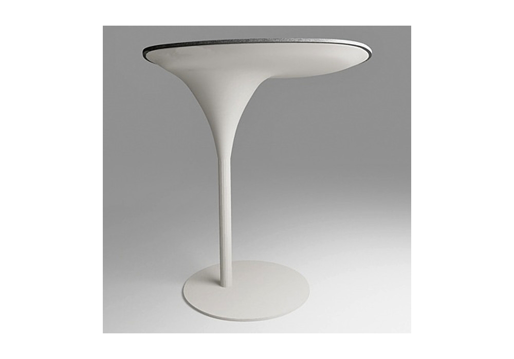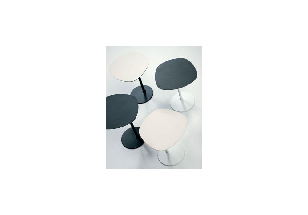 Bloomy, von Patricia Urquiola für Moroso entworfen, ist ein Couchtisch mit schwarz oder weiß lackiertem Stahlgestell und passender geformter ABS-Schale. Oberseite aus Laminam®
