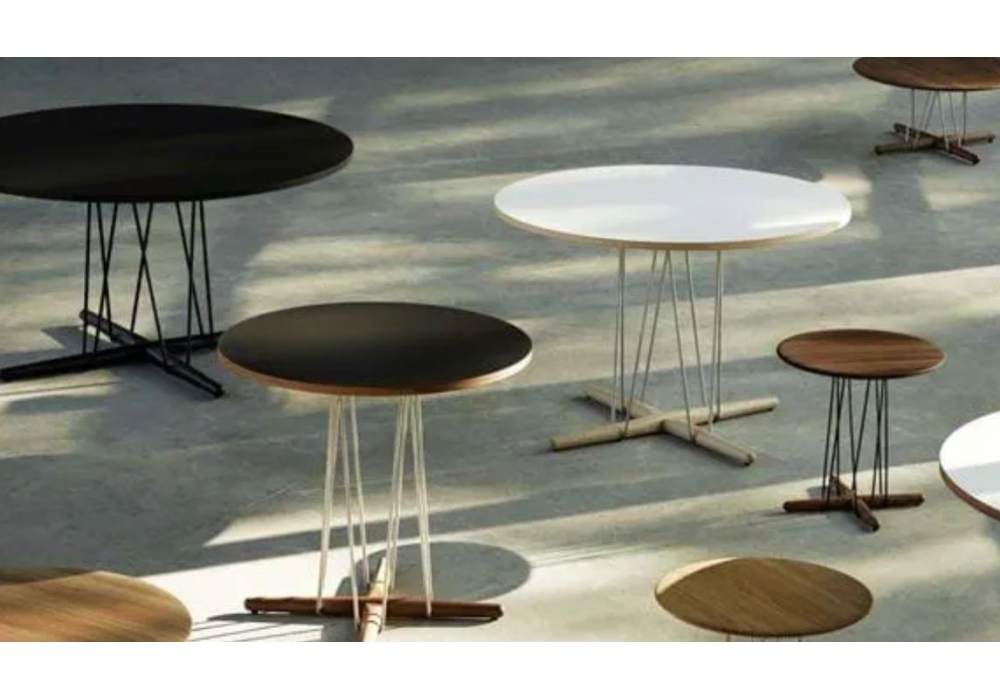 E021 Embrace von Eoos für Carl Hansen & Søn entworfen, ist ein Couchtisch mit Holzplatte und Untergestell verfügbar in verschiedenen Ausführungen und Gestell aus Edelstahl oder schwarz pulverbeschichtet. Erhältlich in zwei Größen.