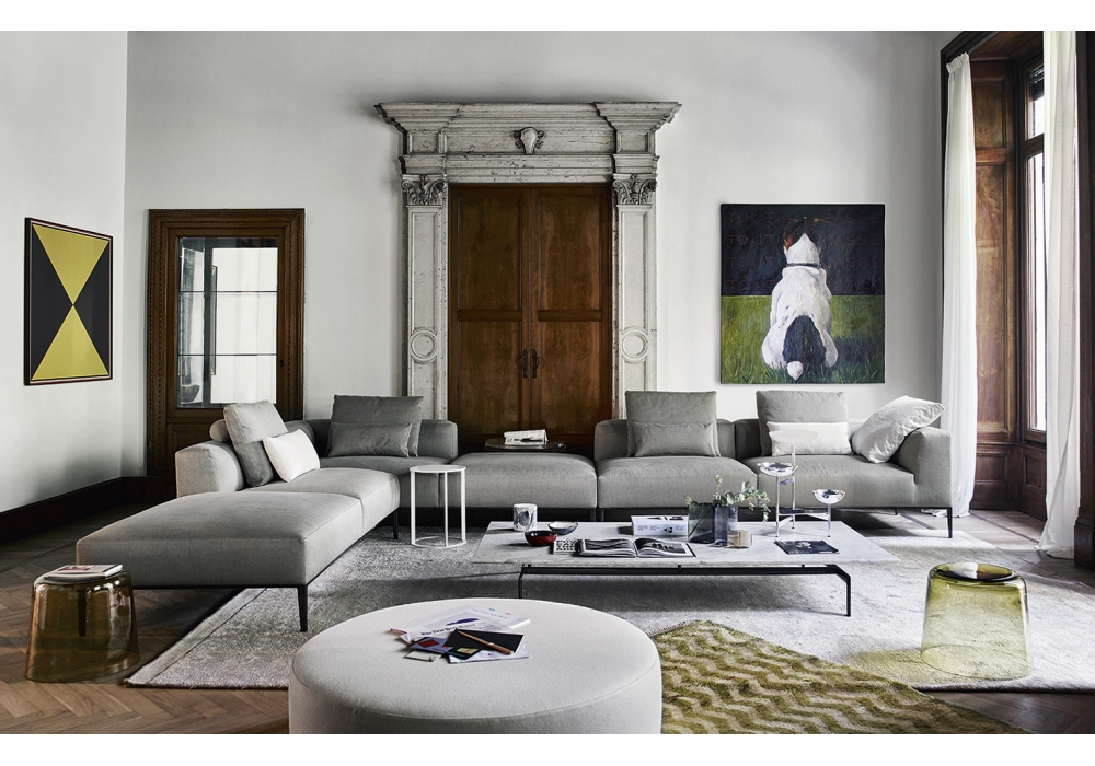 Frank, entworfen von Antonio Citterio für B & B Italia, ist ein Beistelltisch aus Stahl, der in verschiedenen Ausführungen erhältlich ist. Durch die asymmetrische Position der vertikalen Elemente kann die Basis so nah wie möglich an die Sitze gezogen werden.