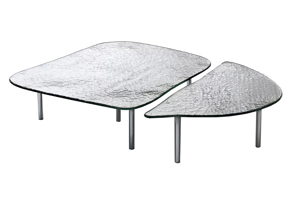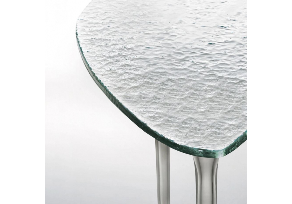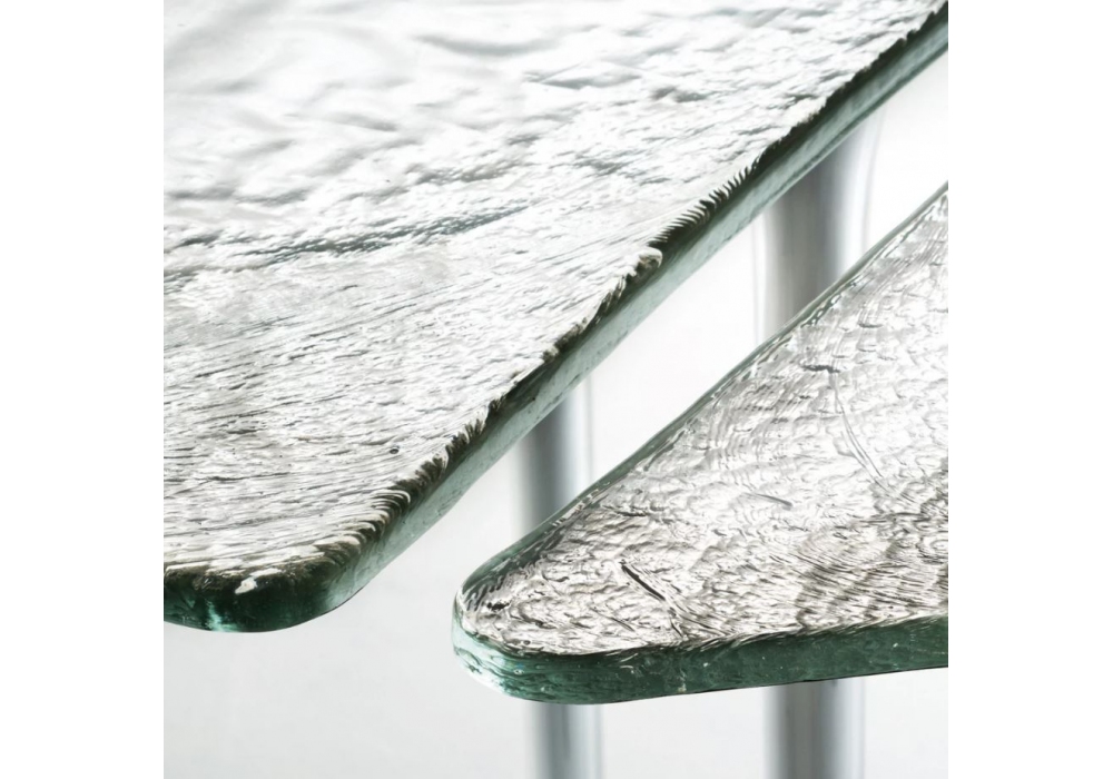 Specchio di Venere von Massimiliano Locatelli - CLS Architetti für Glas Italia ist ein Couchtisch mit abgerundeter Kante und eleganten dünnen Beinen aus mundgeblasenem Glas. Top aus gehärtetem transparentem extraleichtem Glas, versilbertem extraleichtem Glas und die Beine sind immer im gleichen Finish wie das Top.