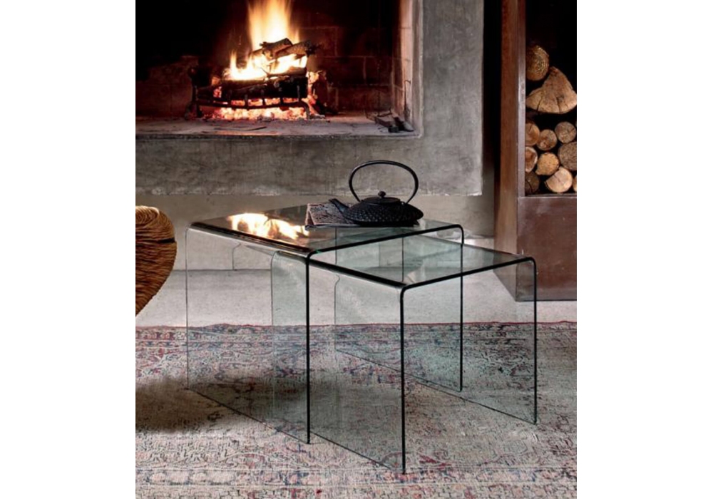 Igloo von R & D Bontempi Casa entworfen, ist ein Couchtisch aus gebogenem Kristall, der in 2 Größen und in verschiedenen Ausführungen erhältlich ist.