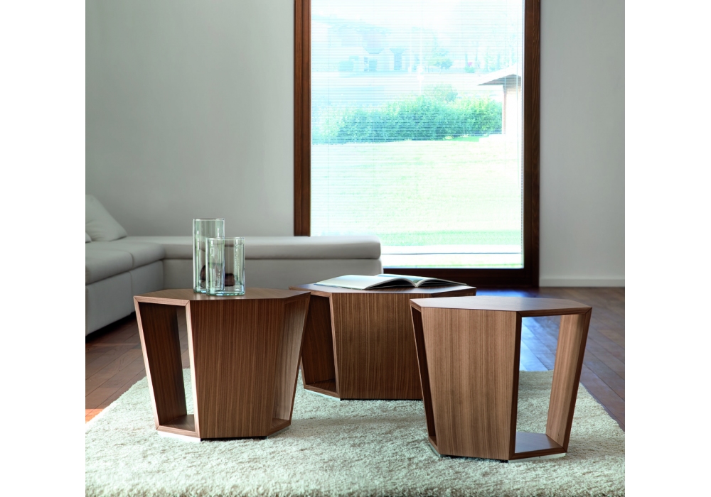 Diamonds von Matthias Demacker für Tonon entworfen, ist ein rautenförmiger Couchtisch aus Canaletto-Walnuss-Furnierholz. Erhältlich in zwei Modellen.