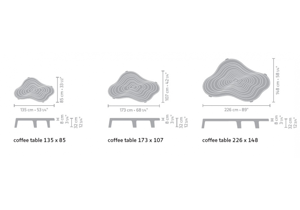 | Abmessungen | 135 x 85 x H 32cm; 173 x 107 x H 32 cm; 226 x 148 x H 32 cm. |
