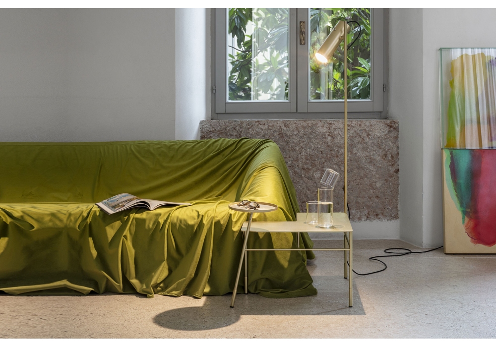 Dase' von Idelfons Colombo für Mogg entworfen, ist ein Eck-Beistelltisch aus Metall mit Lampe und Tablett. Die Leuchte kann links oder rechts positioniert werden, um bei der Montage festzulegen. Verfügbar in 2 Ausführungen.