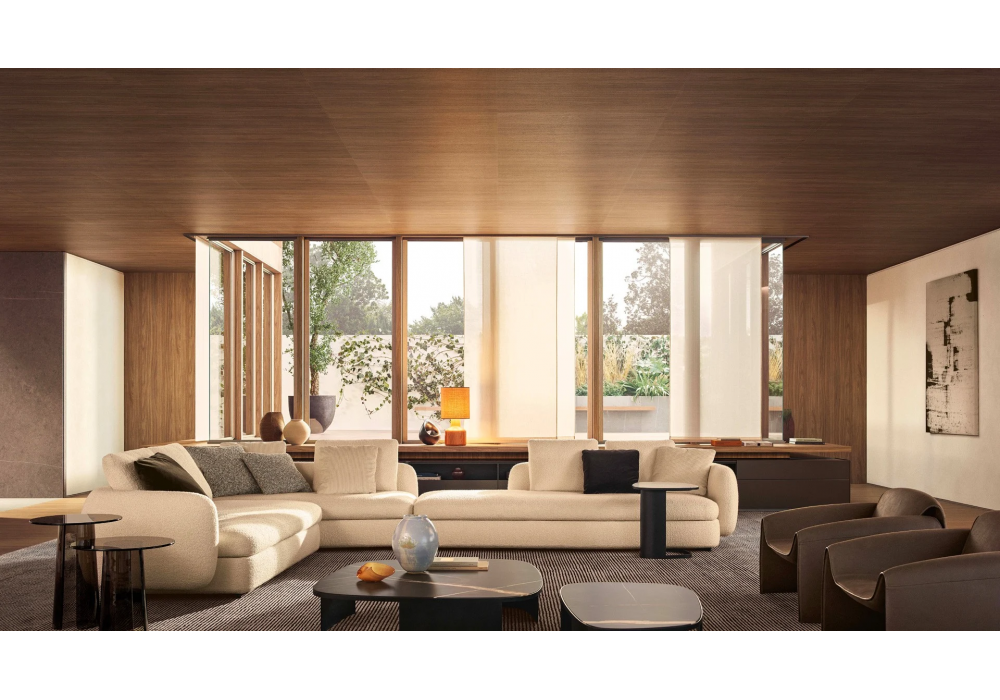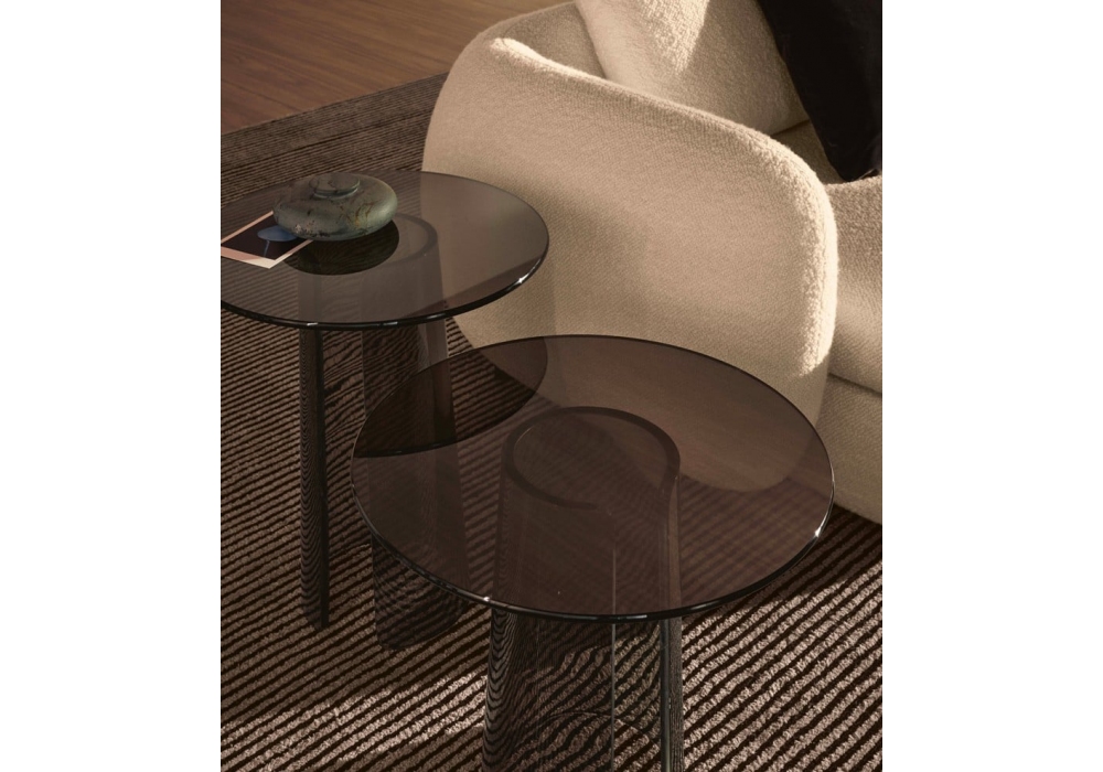 Orbit, von Jean-Marie Massaud für Poliform entworfen, ist ein runder Beistelltisch mit Struktur und Platte aus Bronzeglas. In zwei Dimensionen erhältlich.
