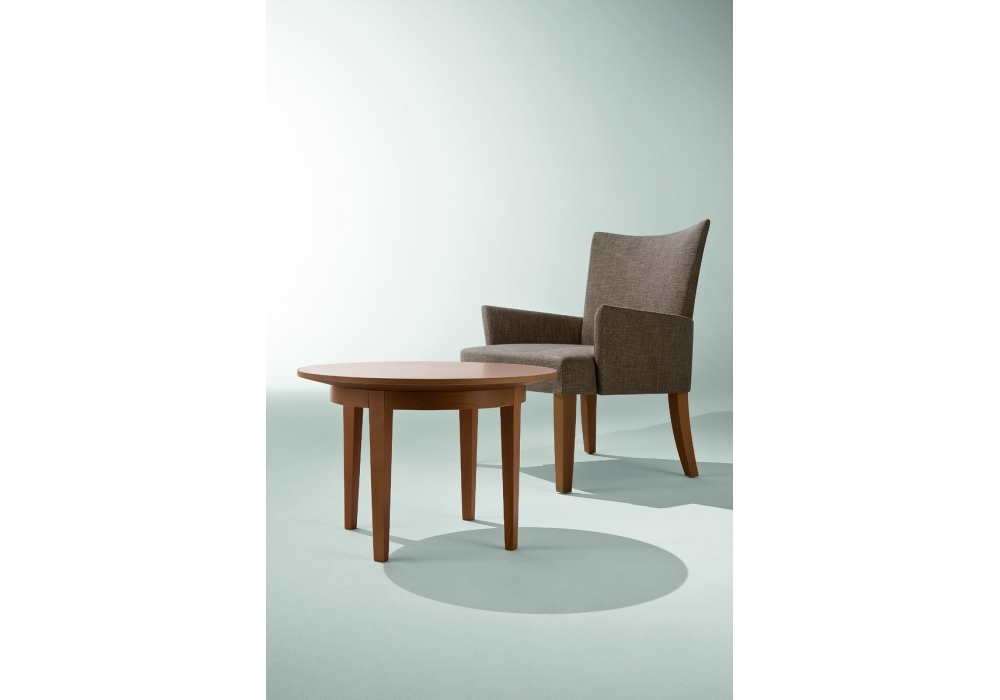 Charmant von Annette Lang für Tonon entworfen ist ein Couchtisch mit Sockel aus massivem Buchenholz, Platte aus furniertem Holz und Kante aus massivem Holz. Erhältlich in zwei Höhen (H 40 cm und H 50 cm).