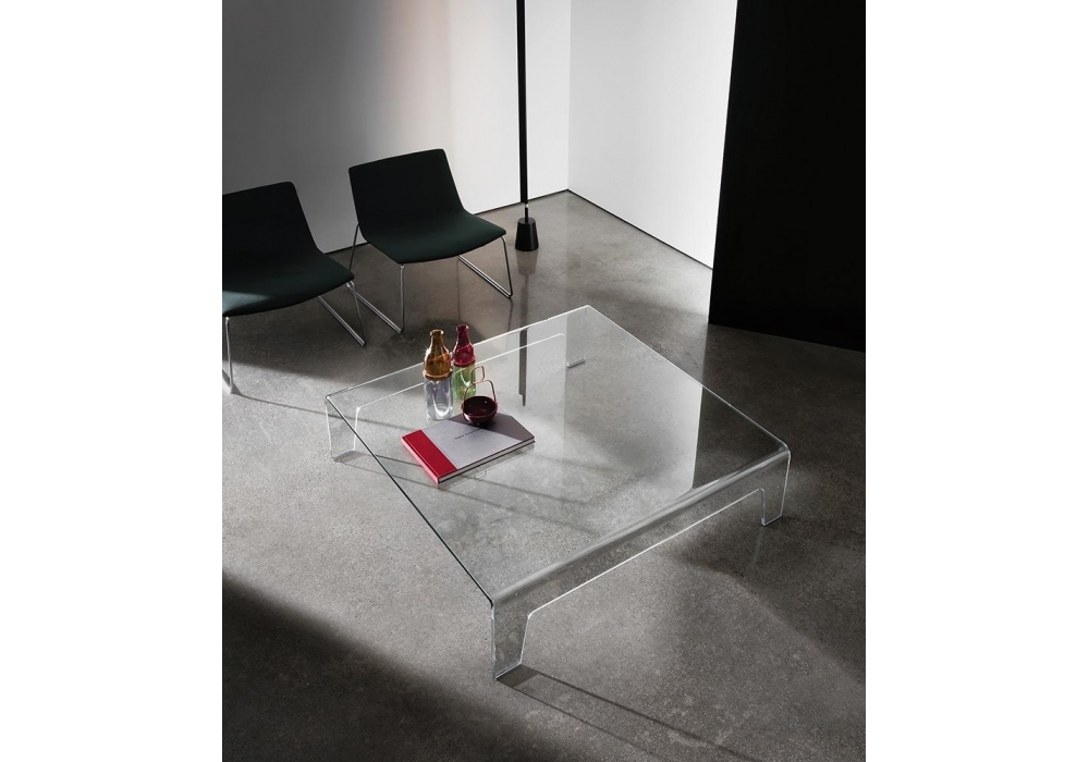 Frog von Lievore, Altherr, Molina für Sovet entworfen, ist ein Couchtisch aus transparentem, geräuchertem oder handlackiertem Glas. Verfügbar in mehreren Ausführungen und Abmessungen.