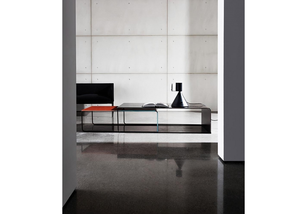Nido von Lievore, Altherr, Molina für Sovet entworfen, ist ein Couchtisch mit Metallstruktur und Glasplatte. Verfügbar in mehreren Ausführungen und Abmessungen.