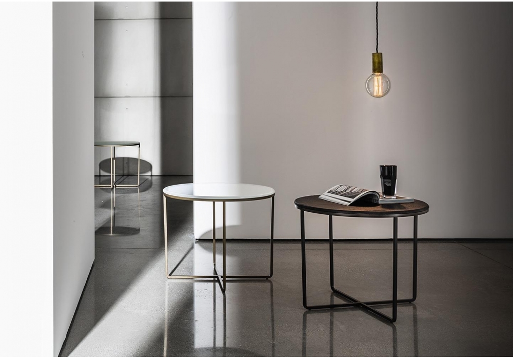 Piktor von Lievore, Altherr, Molina für Sovet entworfen, ist ein Couchtisch mit lackierter Metallstruktur und Glas- oder Keramikplatte. Verfügbar in mehreren Ausführungen und Abmessungen.