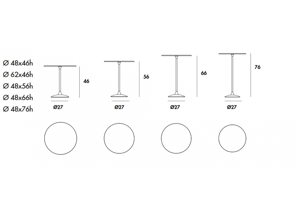 | Abmessungen | Ø 48 x H 46 cm; Ø 62 x H 46 cm; Ø 48 x H 56 cm; Ø 48 x H 66 cm; Ø 48 x H 76 cm; |