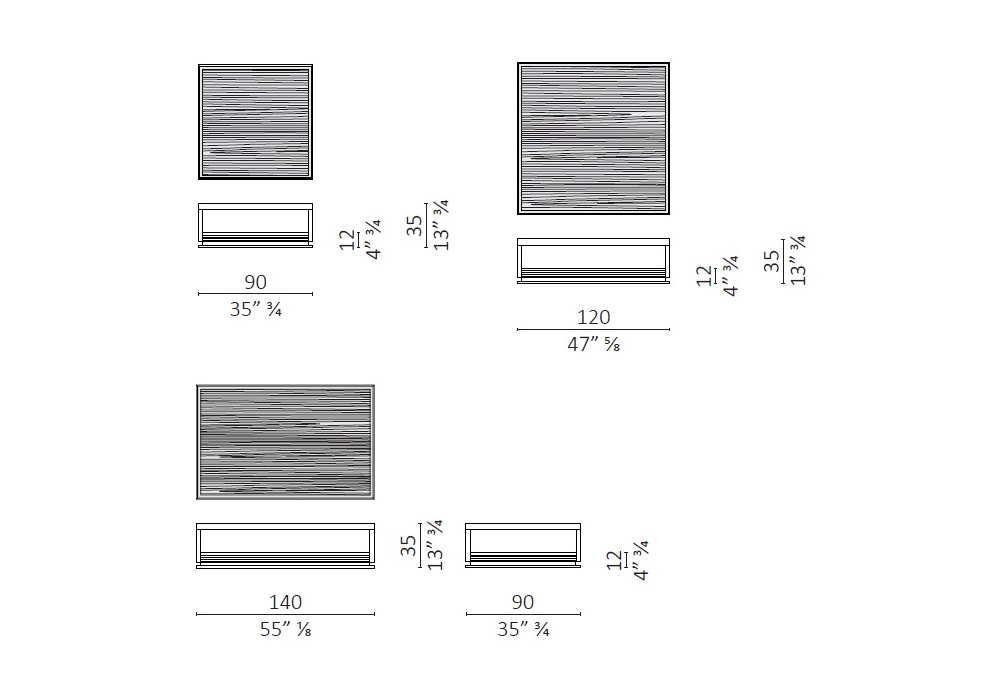 | Abmessungen | 90 x 90 x H 35 cm; 120 x 120 x H 35 cm; 140 x 90 x H 35 cm. |