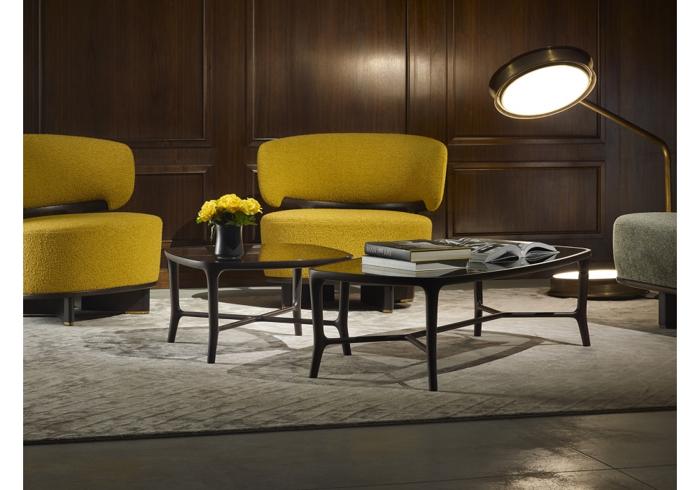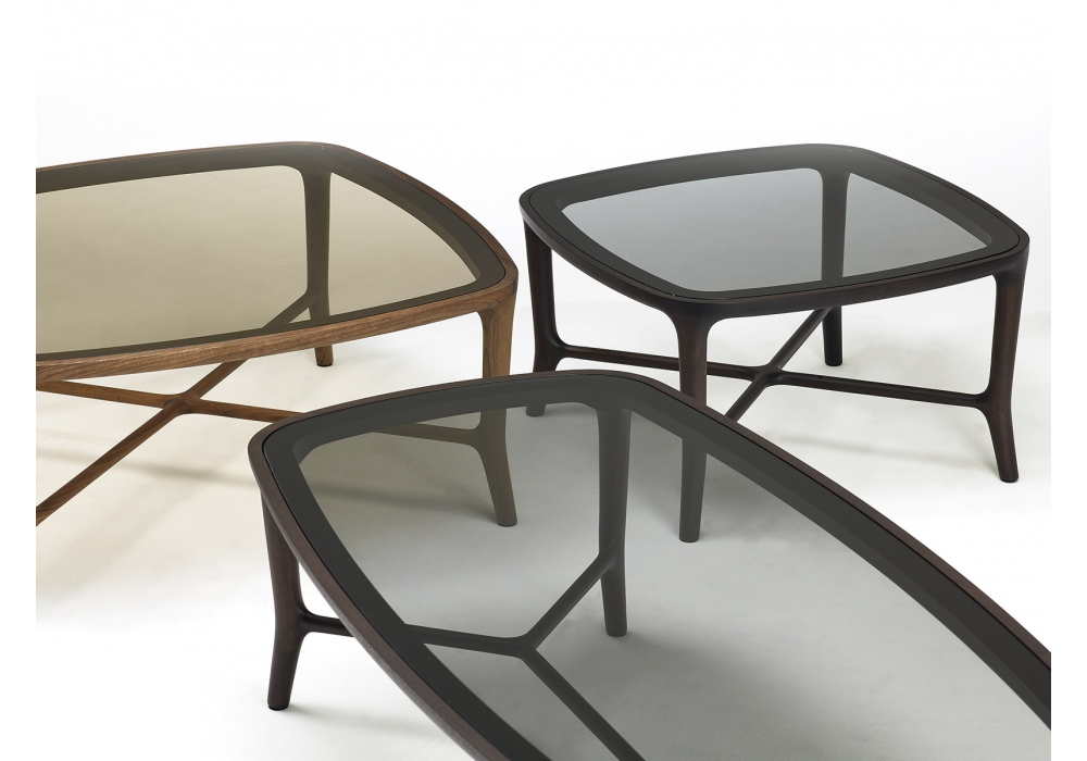 Jun von Roberto Lazzeroni für Ceccotti Collezioni entworfen, ist ein Couchtisch aus massivem amerikanischem Nussbaumholz mit Glasplatte. Auch verfügbar in verschiedenen Ausführungen und Abmessungen.