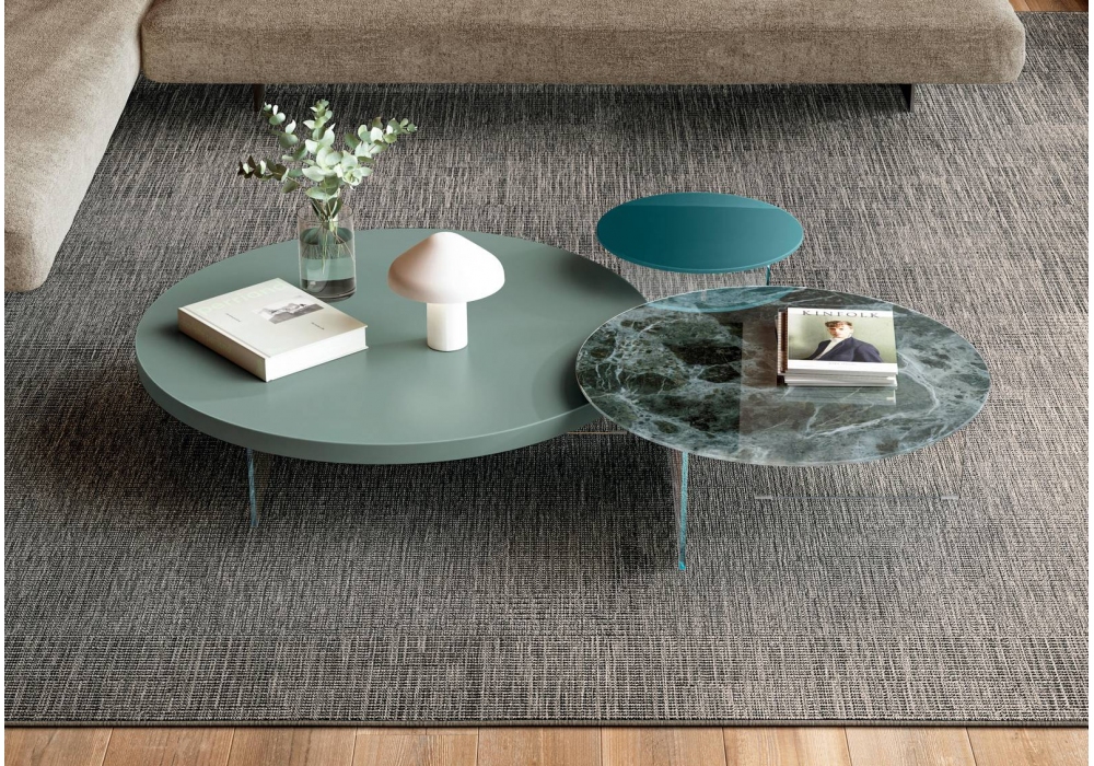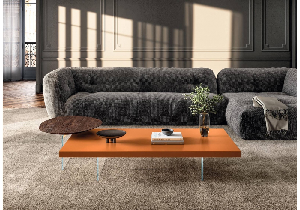 Air von Daniele Lago für Lago entworfen, ist ein Couchtisch mit lackierter Platte und Beinen aus extraklarem oder rauchgrauem Glas. Verfügbar in mehreren Ausführungen und Abmessungen.