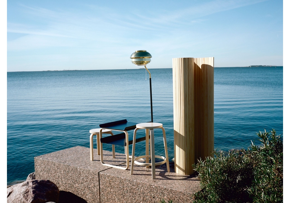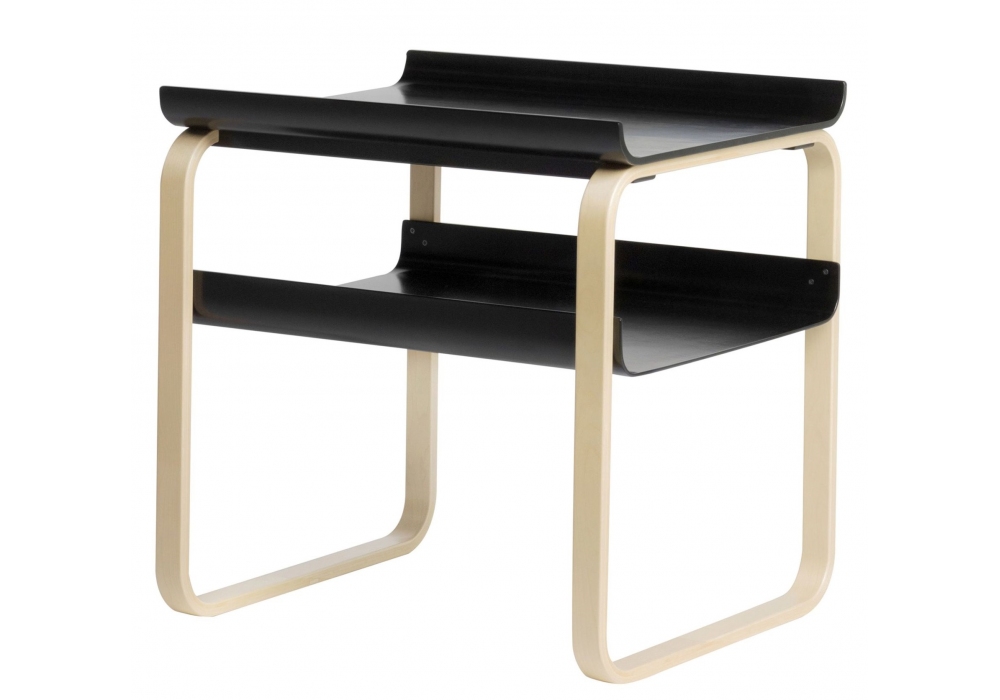 Side Table 915 von Alvar Aalto für Artek entworfen, ist ein Beistelltisch aus einem naturlackierten Rahmen aus massiver Birke und schwarz oder weiß lackierten Regalen.