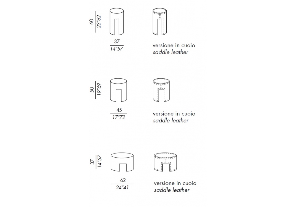 | Abmessungen | ø 37 cm x H 60 cm; ø 45 cm x H 50 cm; ø 62 cm x H 37 cm |