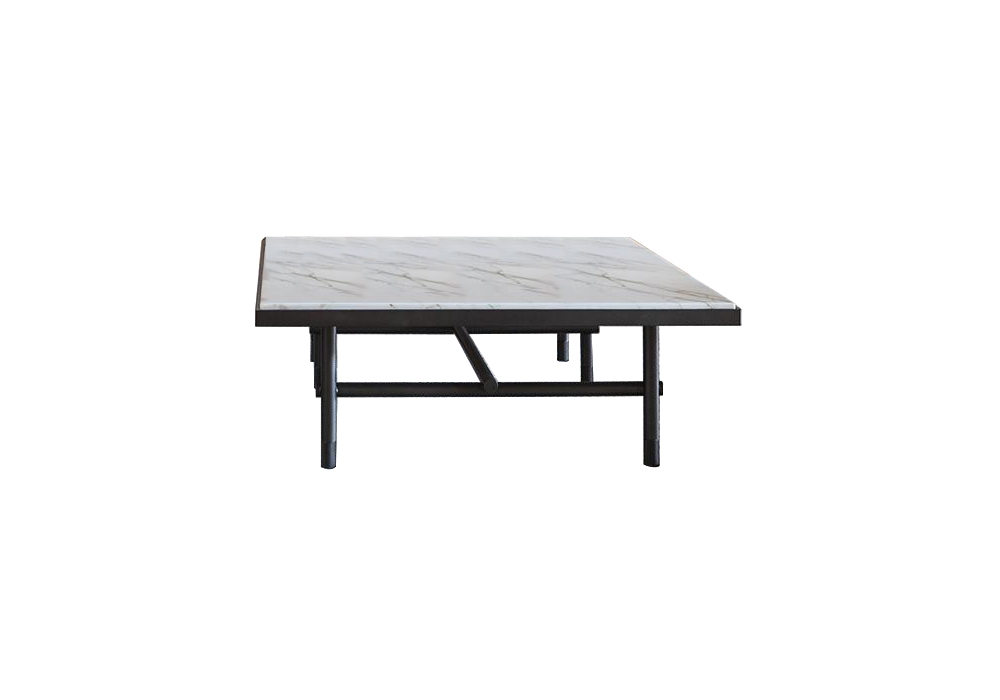 Pierre von Jean-Marie Massaud für Poltrona Frau entworfen, ist ein Couchtisch mit einer Struktur aus einem L-förmigen Aluminiumrahmen mit einer Basis aus lackiertem Stahlrohr mit brüniertem und gestrahltem Finish. Rändelfüße aus brüniertem Aluminium mit verstellbaren Kunststoffkappen. Top in Marmor. Es ist in verschiedenen Größen erhältlich.