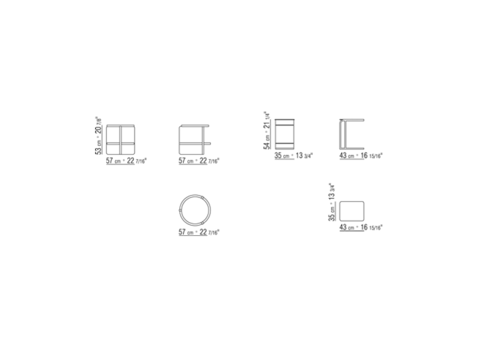 | Abmessungen | • Ø 57 x H 53 cm; • 35 x 43 x H 54 cm |
