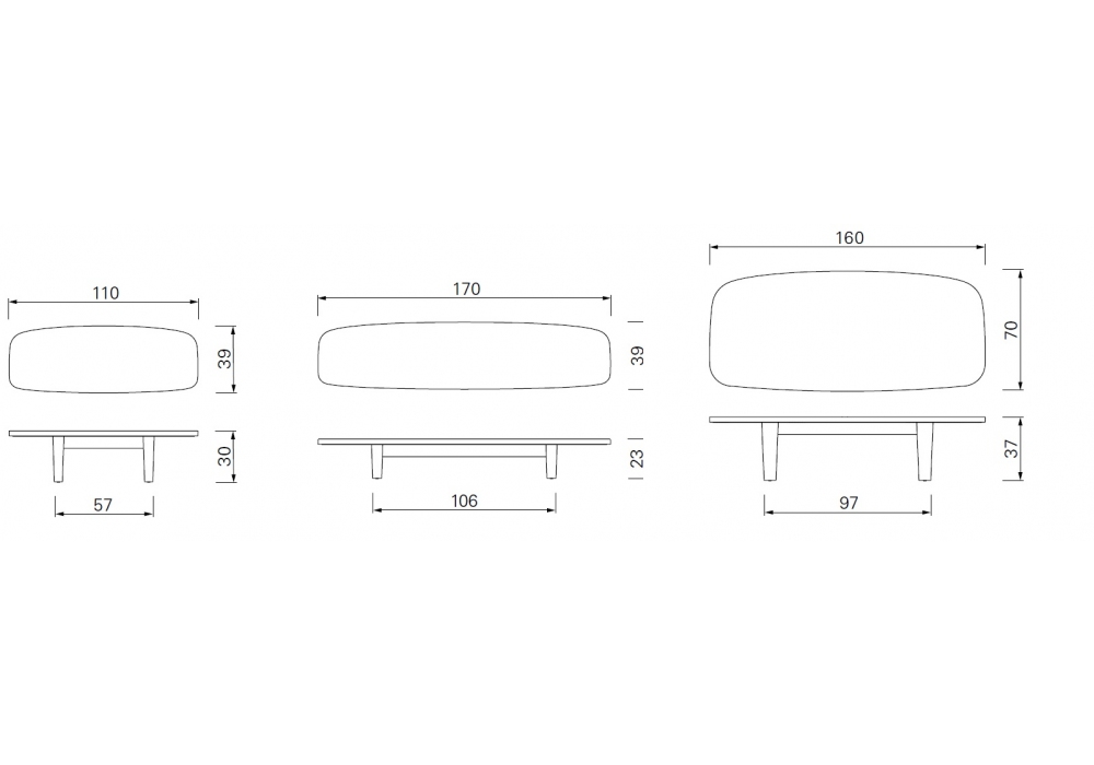 | Abmessungen | 110 x 39 x H 30 cm; 170 x 39 x H 23 cm; 160 x 70 x H 37 cm |