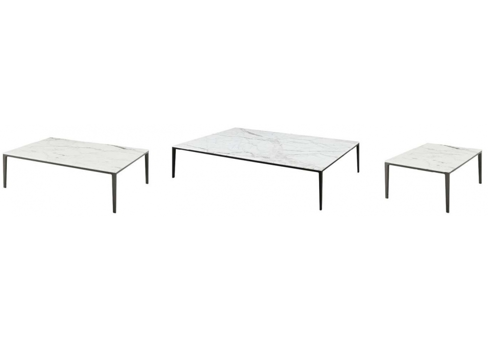 Alcor von Antonio Citterio für Maxalto entworfen ist ein Couchtisch mit einer Marmorplatte in verschiedenen Ausführungen und einer Struktur aus gegossenen und lackierten Aluminium-Strangpressprofilen. Verfügbar in mehreren Größen.