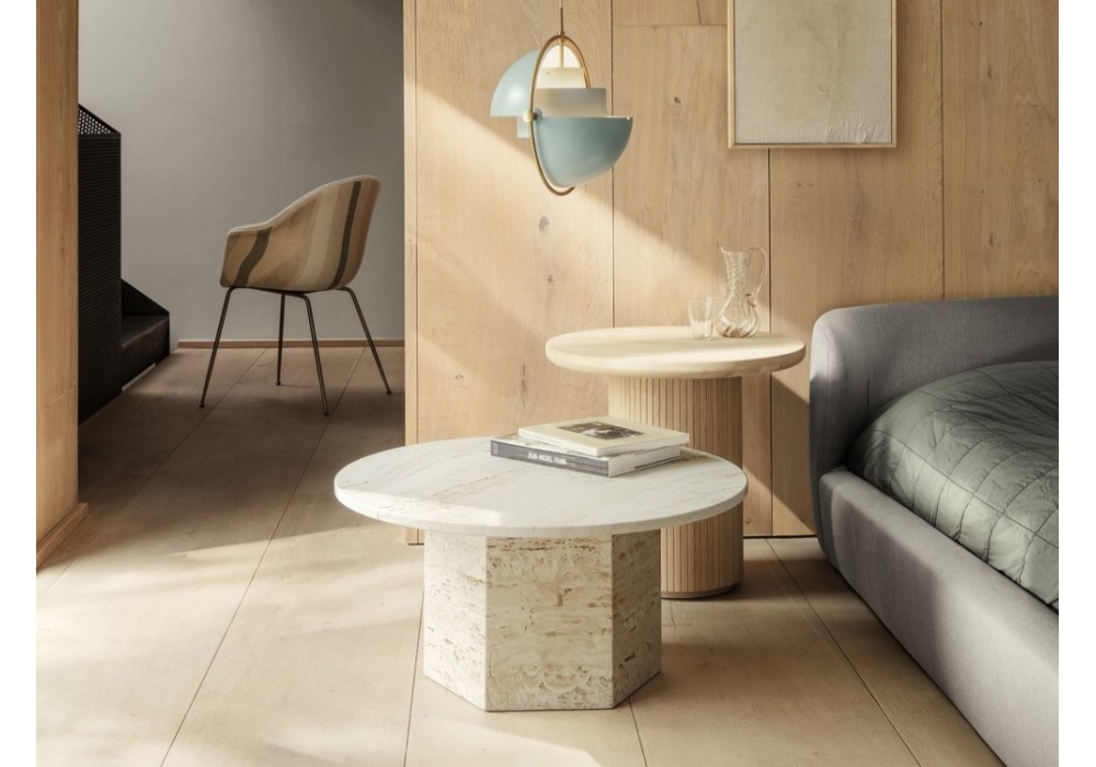 Epic von GamFratesi für Gubi entworfen, ist ein Couchtisch aus Stahl oder Travertin verfügbar in verschiedenen Ausführungen und Größen.