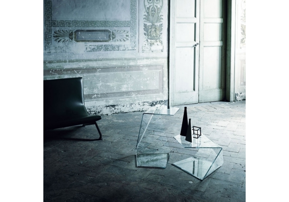 Harold and Maude von Carlo Tamborini für Glas Italia entworfen, ist ein Couchtisch aus extraleichtem transparentem gebogenem Glas, erhältlich in zwei verschiedenen Größen.