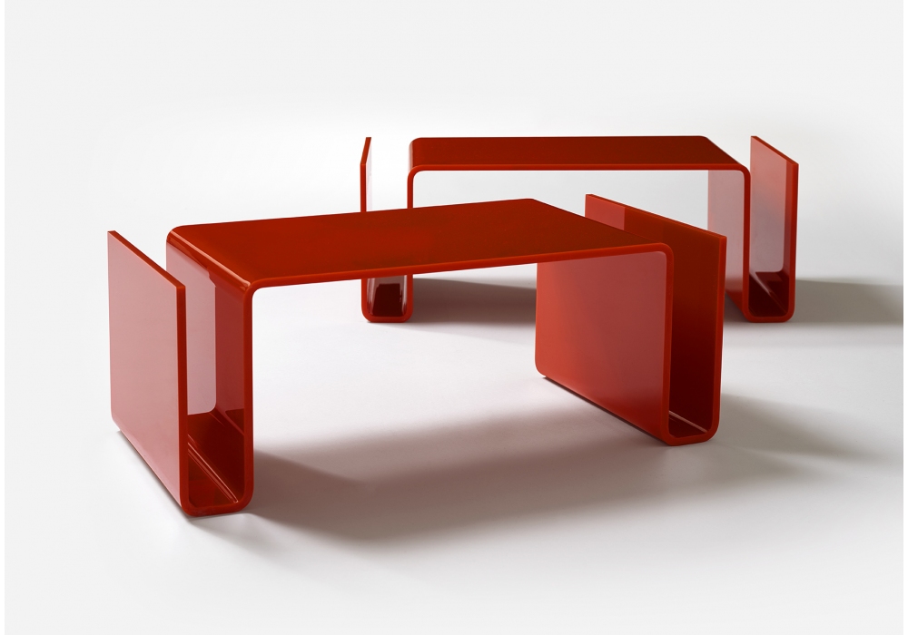 T01 von Superstudio für Poltronova entworfen, ist ein Beistelltisch / Zeitschriftenständer aus Methacrylat. Verfügbar in 2 Ausführungen.