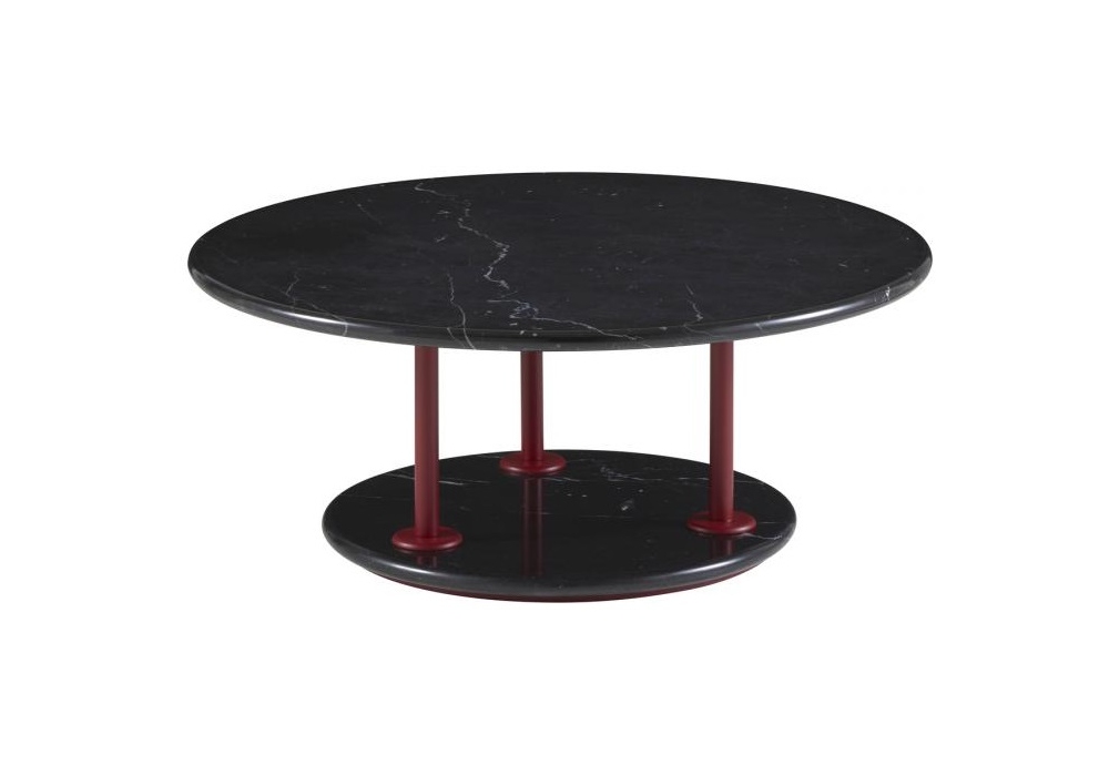 Astair von Pierre Charpin für Ligne Roset entworfen, ist ein Couchtisch mit lackiertem Stahlrohr zwischen dem Untergestell und der Marmorplatte (poliert, mit fleckenabweisender Behandlung). Verfügbar in 2 Modelle.