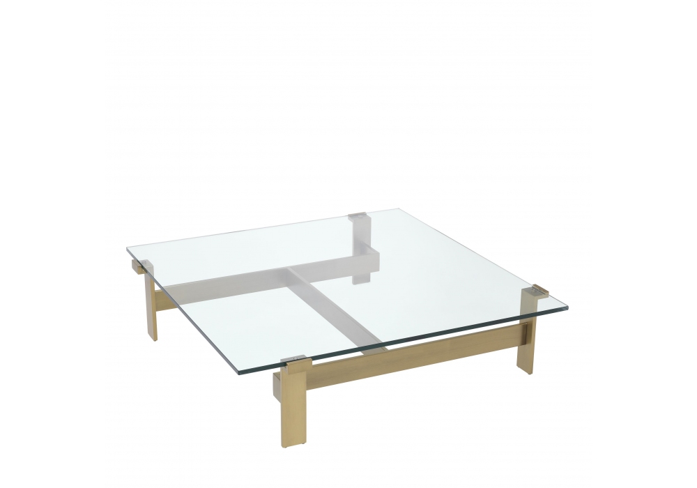 Vauclair von Eichholtz entworfen, ist ein Couchtisch mit einer Platte aus 15 mm klarem Glas und einer Metallstruktur.
