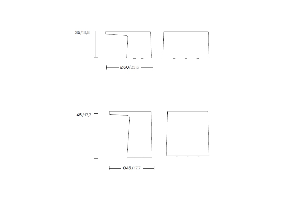 | Abmessungen | Ø 60 x H 35 cm; Ø 45 x H 45 cm. |