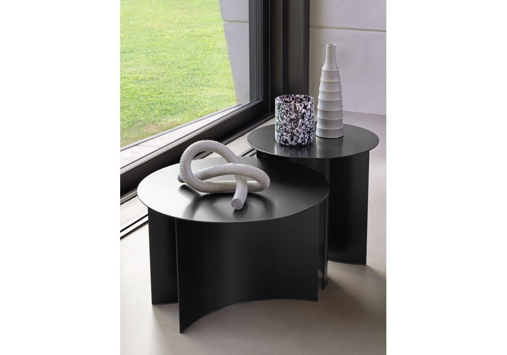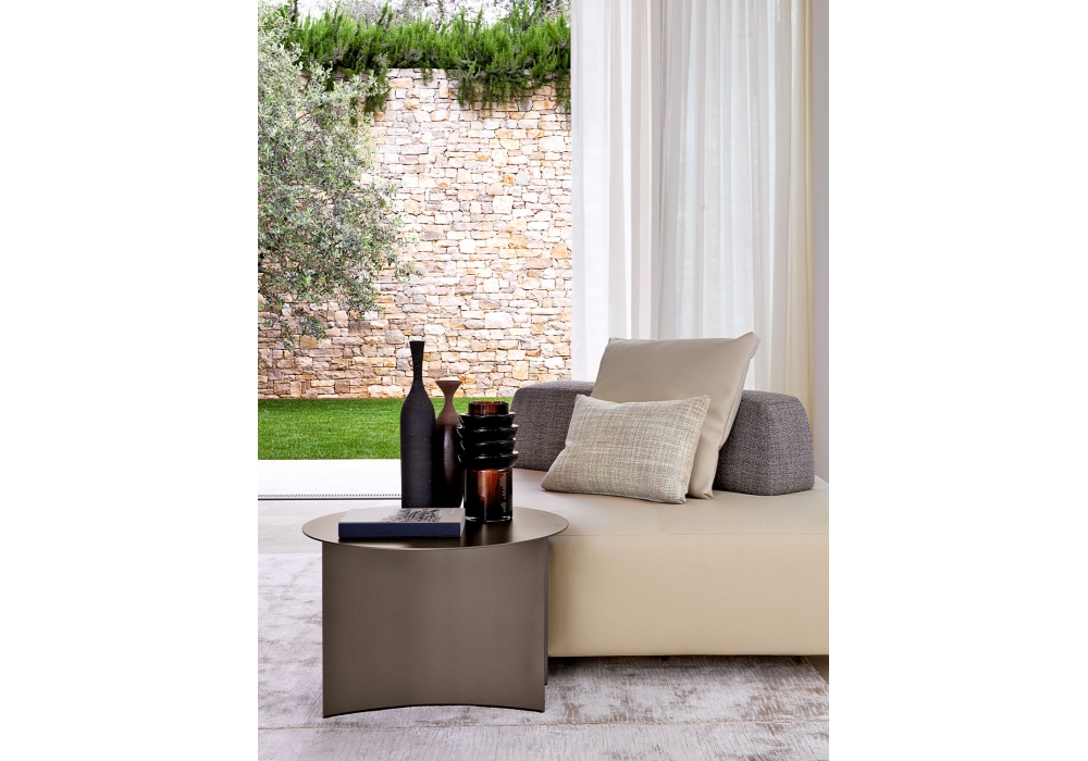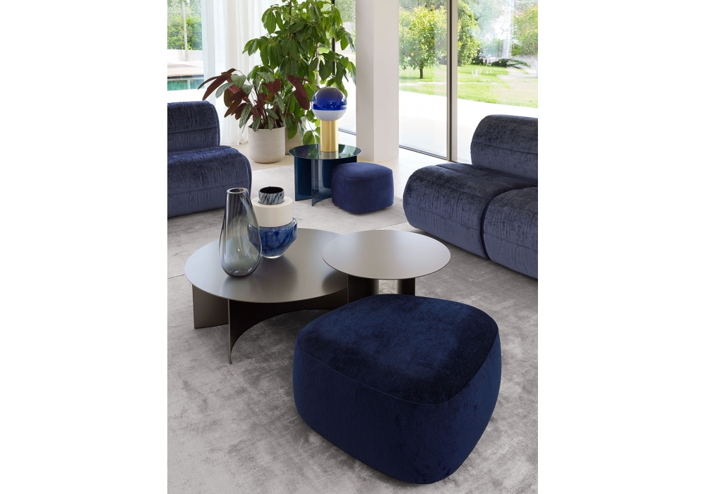 Pierre von Studio Contromano für Flou entworfen, ist eine niedrige Tischkollektion mit Tischplatte und Struktur aus Metall verfügbar in verschiedenen Ausführungen.