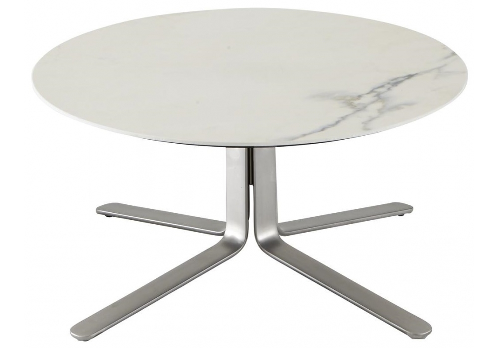Moa von Keiji Takeuchi für Ligne Roset entworfen, ist ein Beistelltisch mit Platte aus Keramiksteinzeug in Marmoroptik. Sockel aus Metall verfügbar in 2 finishes.
