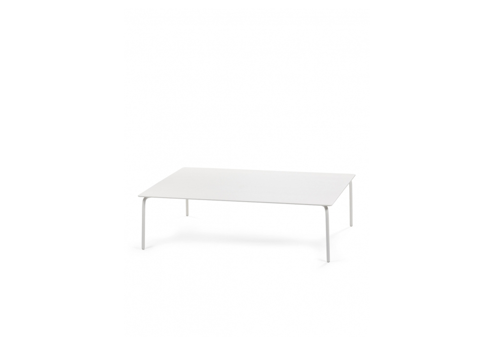 August Firma von Vincent Van Duysen für Serax ist ein Tisch für den Außen- oder Innenbereich, Gestell und viereckige Platte aus Aluminium in den Farben erhältlich; schwarzer, grüner Eukalyptus oder Sand.
