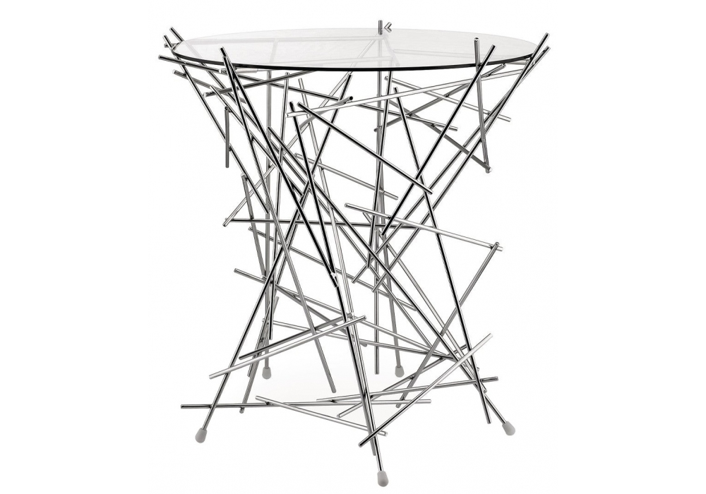 Blow Up von Fratelli Campana für Alessi entworfen, ist ein Beistelltisch mit Struktur aus verchromtem Stahl und transparenter Glasplatte.