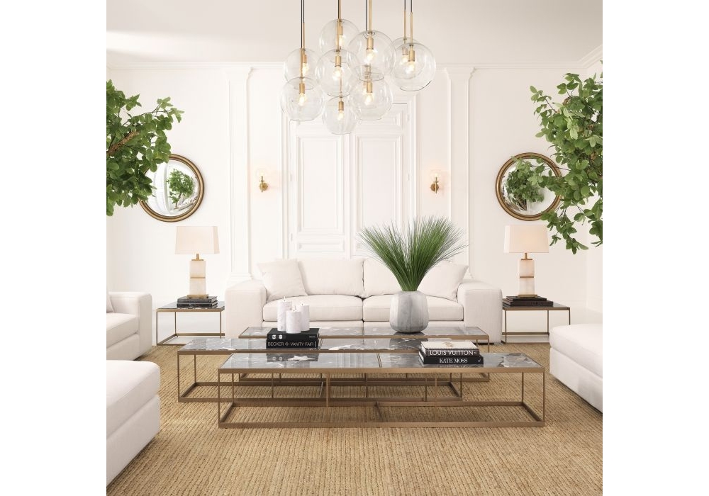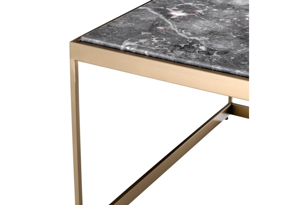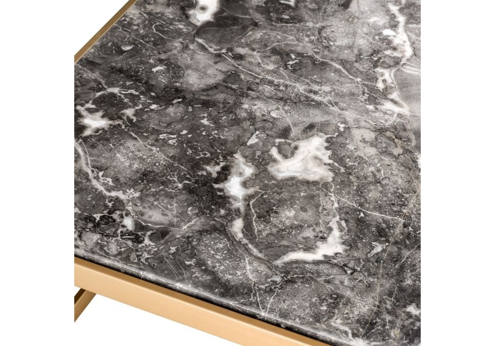 Side Table La Quinta von Eichholtz entworfen ist ein Beistelltisch mit einer nüchternen, aber robusten Struktur und einer eleganten Marmorplatte.