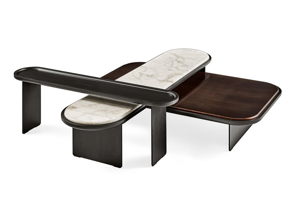 Sensei von Staffan Tollgard & Filippo Castellani für Gallotti&Radice entworfen, ist ein Couchtisch mit Metallstruktur und Holzboden “deep black” lackiert. Auf dem Holzboden, Glasplatte 12mm mit halben Bullnose-Kanten in der Ausführung “Rosso Marte”. Die Glasplatte ist nicht auf der Holzplatte befestigt, sondern nur aufgelegt. Lieferbar auch aus Marmor 20mm Calacatta Vagli Oro Natur poliert, Ceppo di Grè® gebürstet, Arabescato Orobico Rosso satiniert oder Bianco Carrara Gioia Natur gebürstet. Der Couchtisch A wird ausschließlich mit eingelassener Holzplatte gefertigt.