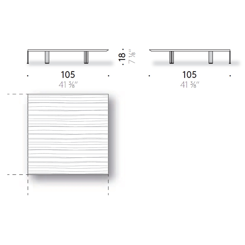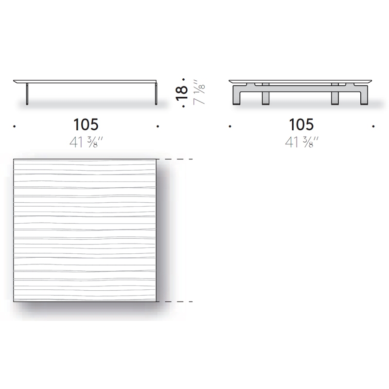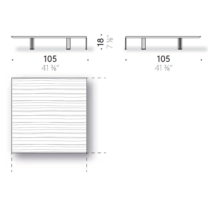 Flying Landscape von Piero Lissoni für DePadova entworfen, ist ein niedriger Tisch aus Stahlblech mit rauer grauer Acrylfarbe und Füßen aus messingfarbenem thermoplastischem Material. Die Platte ist aus Marmor in verschiedenen Ausführungen. Der Tisch ist in verschiedenen Modellen und Größen sowie in der Ausführung neben dem Sofa erhältlich.