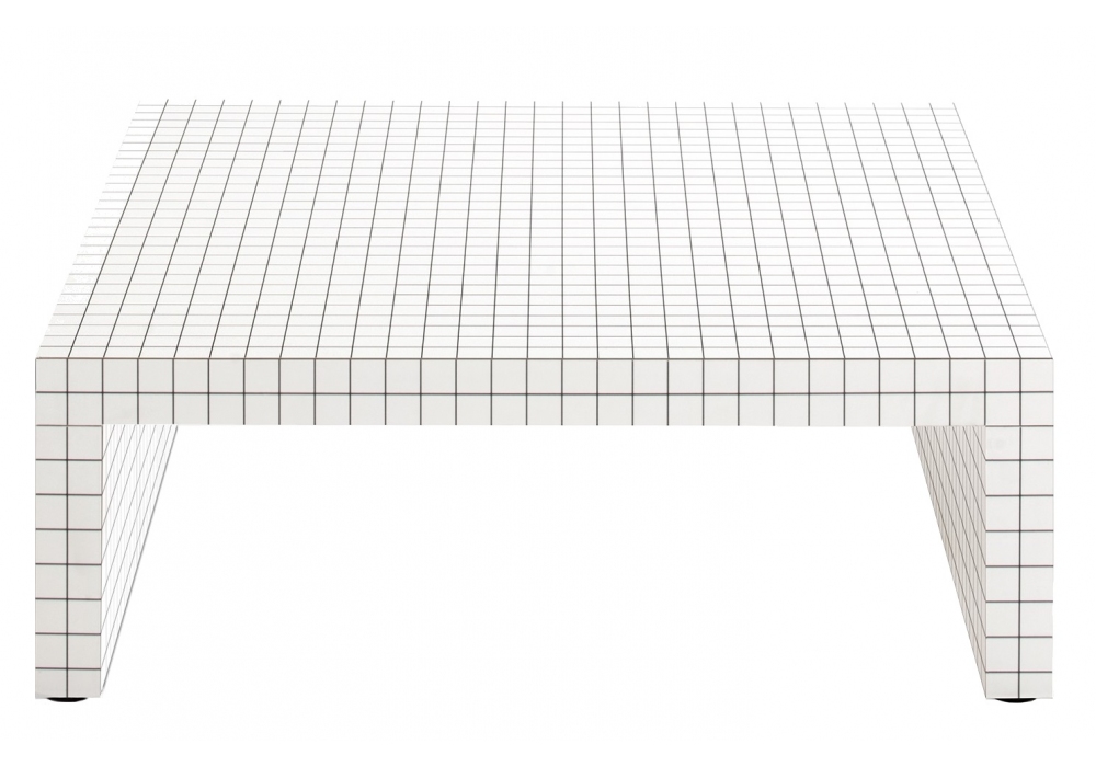 656 Quaderna von Superstudio / Cristiano Toraldo di Francia für Zanotta entworfen, ist ein Couchtisch mit bedruckter laminierter Wabenholzstruktur, weiße Farbe, mit digitalem kariertem Druck.