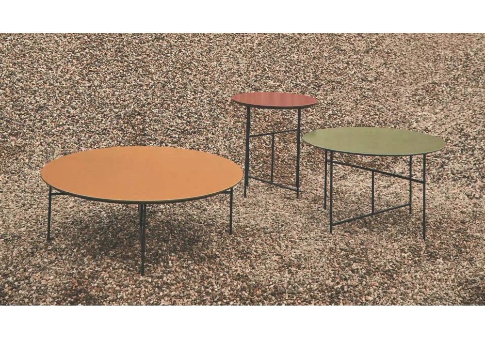 Sen Outdoor von Kensaku Oshiro für DePadova entworfen, ist ein Couchtisch mit Basis aus anthrazitgrau lackiertem Stahl und MDI-Verbundplatte in verschiedenen Ausführungen. Auch in verschiedenen Größen erhältlich.