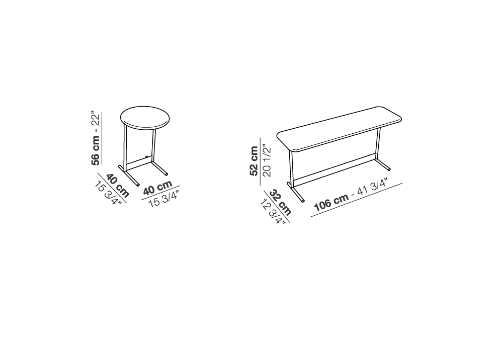 | Abmessungen | Ø 40 x H 56 cm; 106 x 32 x H 52 cm. |
