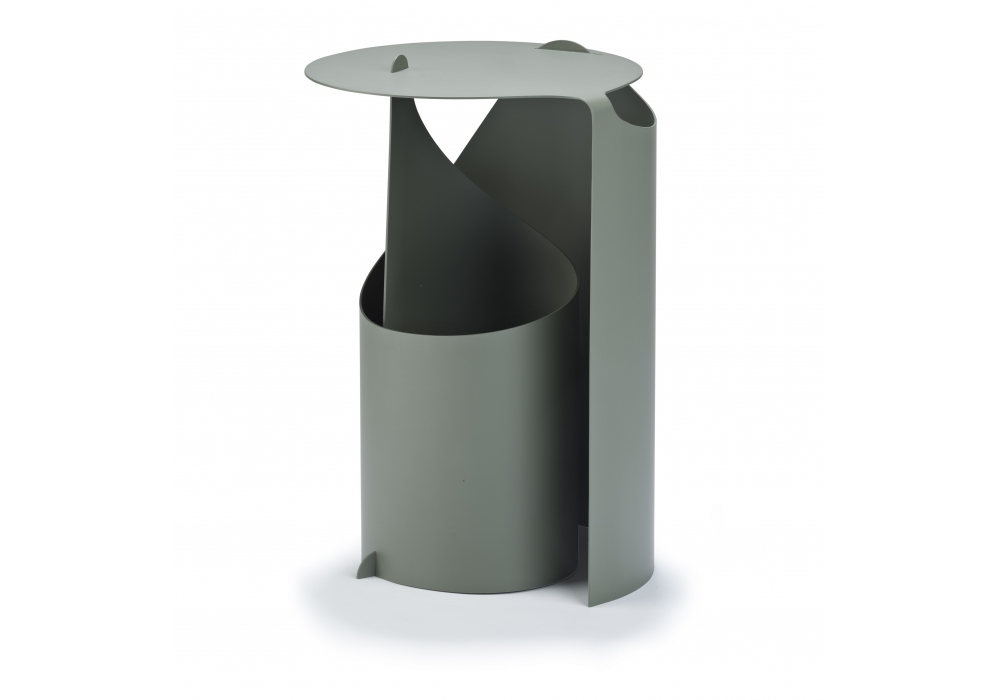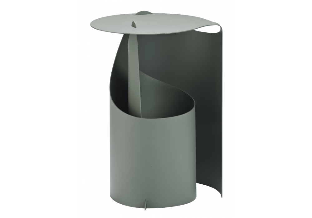 Coffee Table von Aldo Bakker für Karakter entworfen, ist ein Beistelltisch aus matt lackiertem Stahl in Staubgrün.