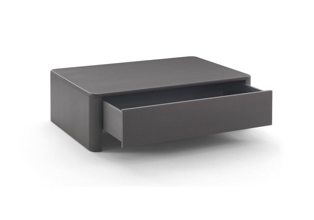 Tokio von Claesson Koivisto Rune für Arflex entworfen, ist ein Modul mit Schublade, bestehend aus einer Struktur aus schokoladengefärbter Esche und einer Platte aus Travertino-Marmor oder schokoladengefärbter Esche.