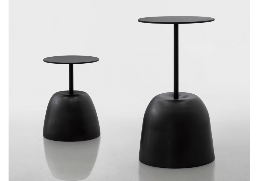 Basalto von Verter Turroni für ImperfettoLab entworfen, ist ein Couchtisch mit Glasfaserbasis, Metallstange und Fenix-Platte.