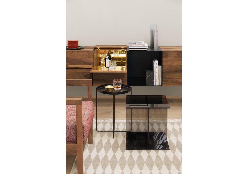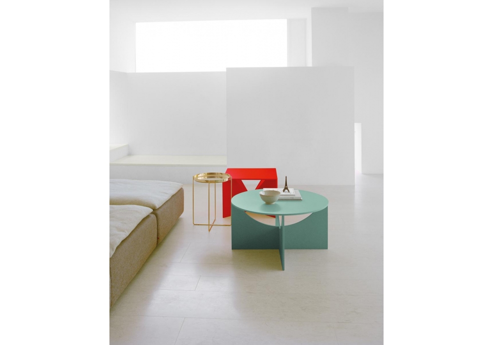 CM05 Habibi von Philipp Mainzer für E15 entworfen, ist ein handgefertigter Beistelltisch aus poliertem Messing, Kupfer oder Edelstahl. Das Tablett kann von der Basis entfernt und separat verwendet werden. Verfügbar in mehreren Abmessungen und Ausführungen.