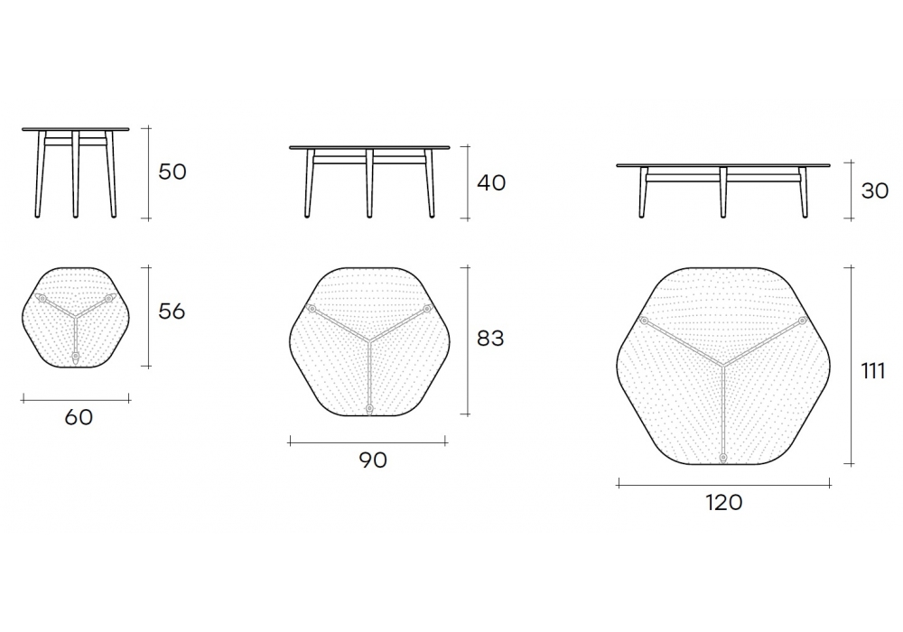 | Abmessungen | 60 x 56 x H 50 cm; 90 x 83 x H 40 cm; 120 x 111 x H 30 cm |