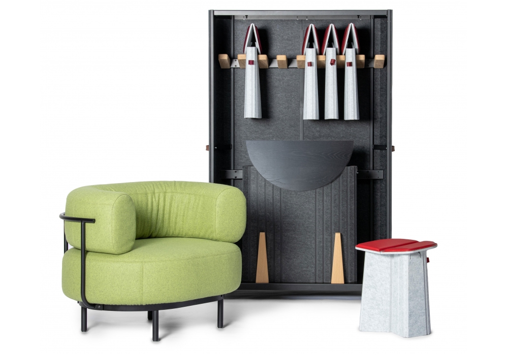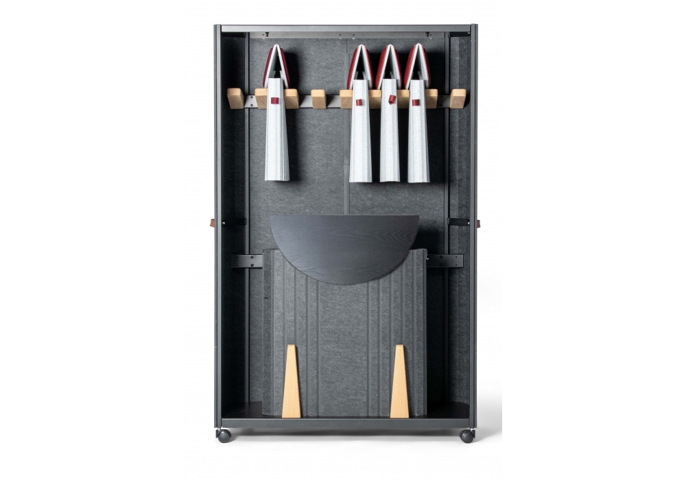 DS-5010 von Simon Busse für De Sede entworfen, ist ein klappbarer Couchtisch mit Platte aus Eiche, Schale aus anthrazitfarbenem Polyesterfilz mit schwarz pulverbeschichteter Metallstruktur und Ledergriffen in verschiedenen Ausführungen. Verfügbar in zwei Dimensionen.