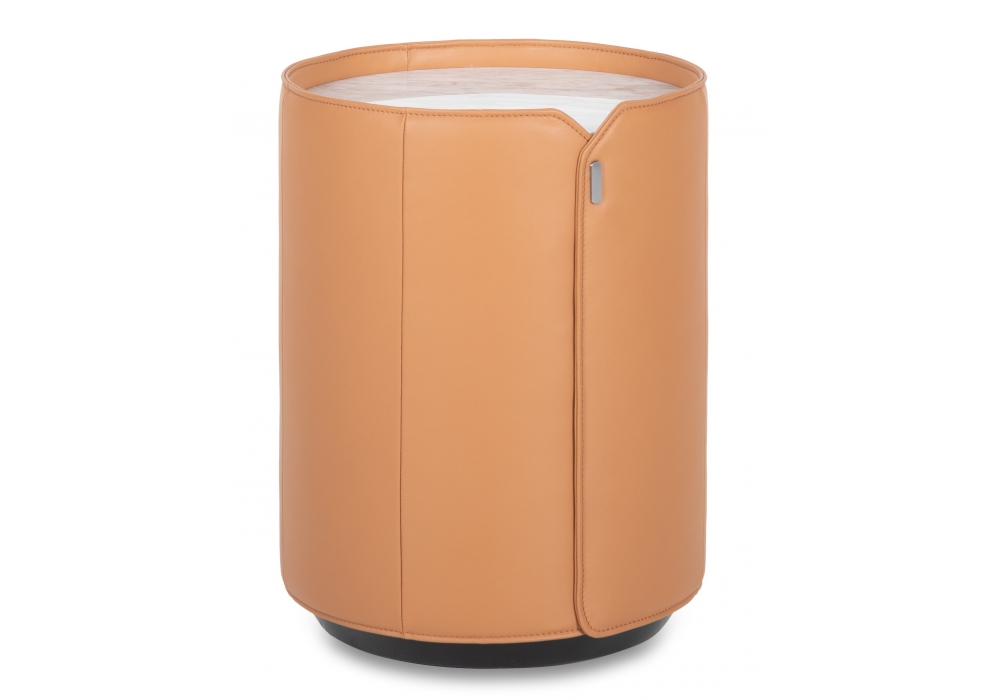 DS-5020 von Simon Busse für De Sede entworfen, ist ein Couchtisch mit einer Platte aus schwarz hinterlackiertem Glas oder Marmor, einem Zwilling aus poliertem Edelstahl und einer Struktur aus Paneelmaterialien und mit Leder oder Stoff mit Doppelnähten bezogen. Verfügbar in zwei Dimensionen.